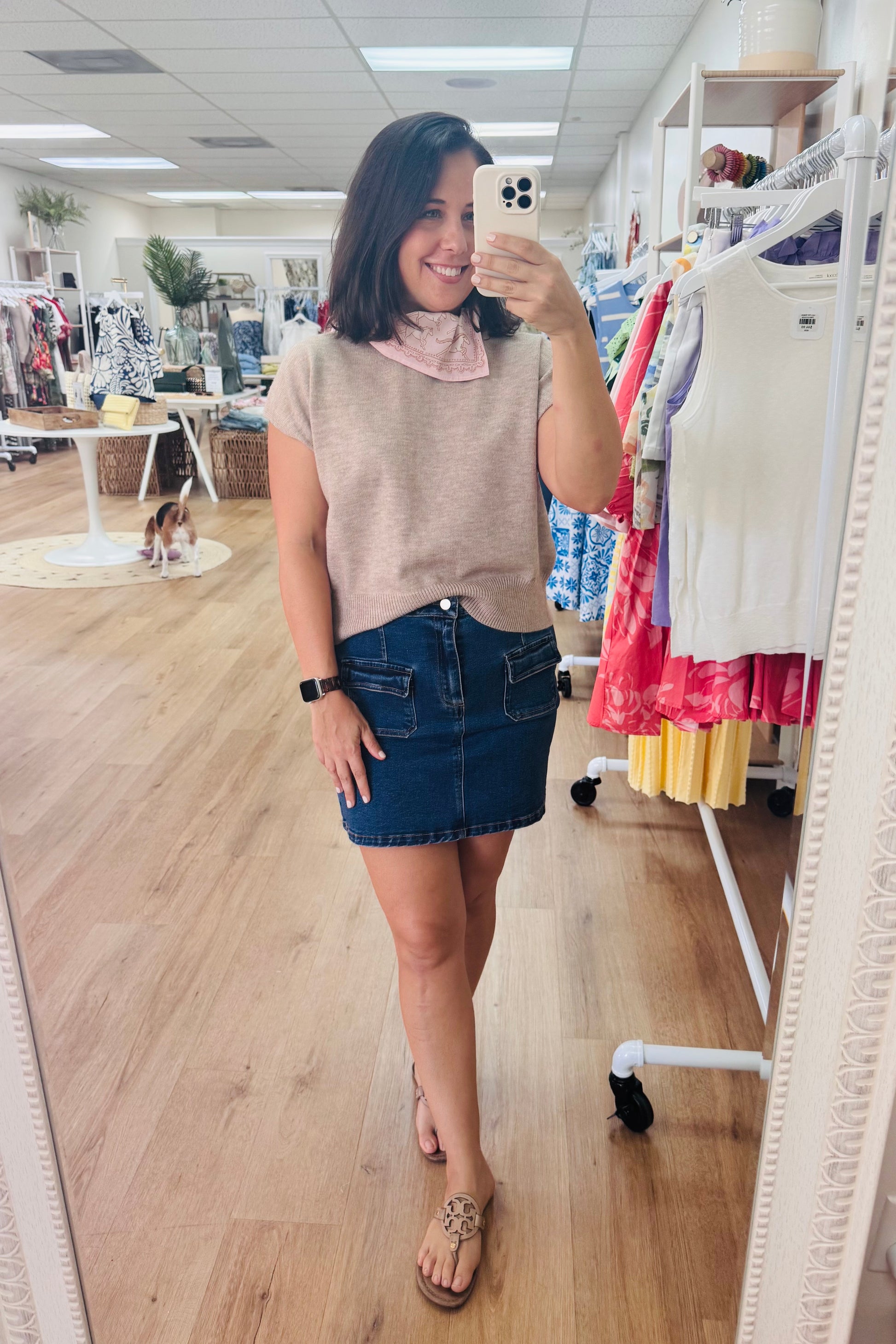 Meet the Dark Denim Mini Skirt — a classic made modern with just the right amount of stretch. Designed for comfort and versatility, this skirt moves with you while keeping its sleek silhouette. The dark wash pairs perfectly with everything in your closet, from crisp button-downs to cozy knits, making it your go-to piece no matter the season. Whether styled for brunch, errands, or a night out, this denim mini is a must-have staple that never goes out of style.