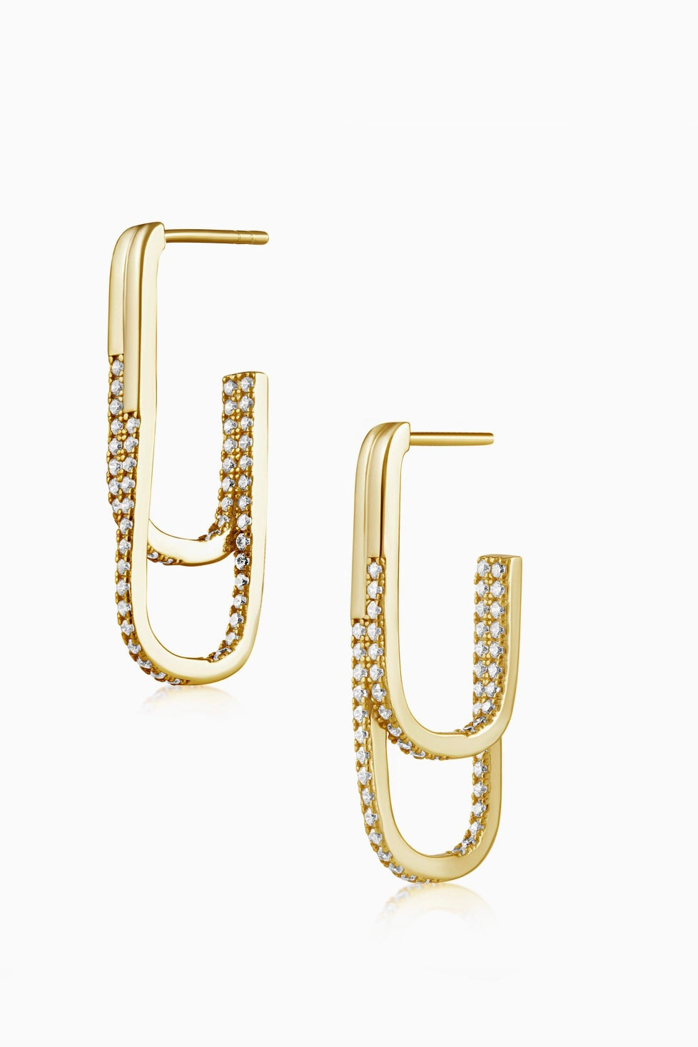 Crafted from 18k gold-plated sterling silver, these earrings feature a layered paperclip-style shape for a sleek and sophisticated finish. Lightweight and luminous, the pavé detailing adds just enough dazzle to make any outfit feel instantly polished.