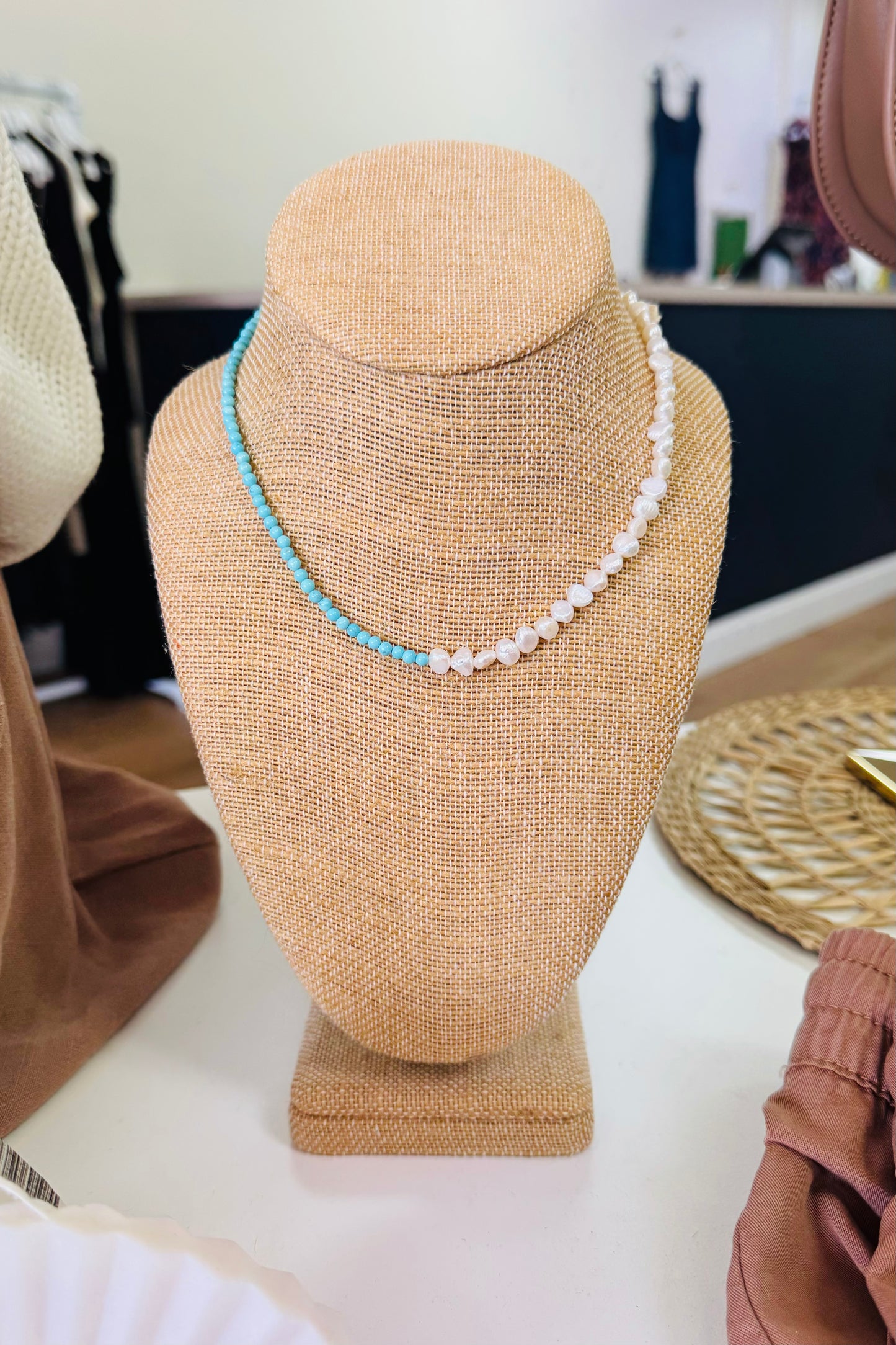 Get ready to add a touch of coastal flair to your everyday look with the Half Pearl, Half Turquoise Beaded Layering Necklace. Handmade locally in Naples, FL by Southern Marc Designs for Southern Sunday, this necklace features contrasting beads for a unique and eye-catching design. Perfect for any occasion - from everyday wear to special events - this necklace is a must-have for any jewelry collection.