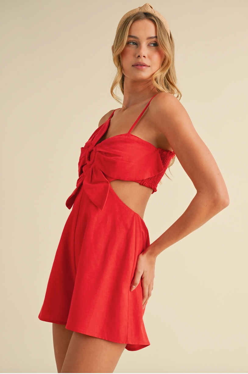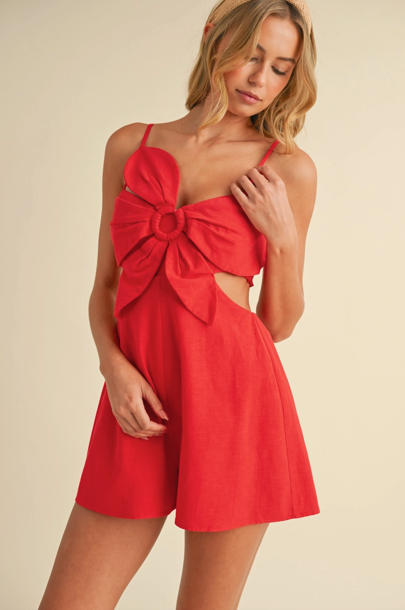 This sleeveless romper features a feminine flower cutout top, tailored with a smocked back for stretch and a comfortable fit. Designed to run true to size, the Red Romper offers just the right amount of structure while letting you move freely through sun-filled days. The classic cut makes it endlessly versatile—just switch from sandals to heels and you're set from day to night.